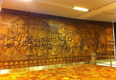 This Mysore Royal Procession artwork aims at recreating the traditional Indian Regal Procession Motifs in Cast Resin. It is installed at Domestic Pier near Gate 27 & 28, International Airport (T3-IGI) - New Delhi Wall Size : 16 Feet X 38 Feet